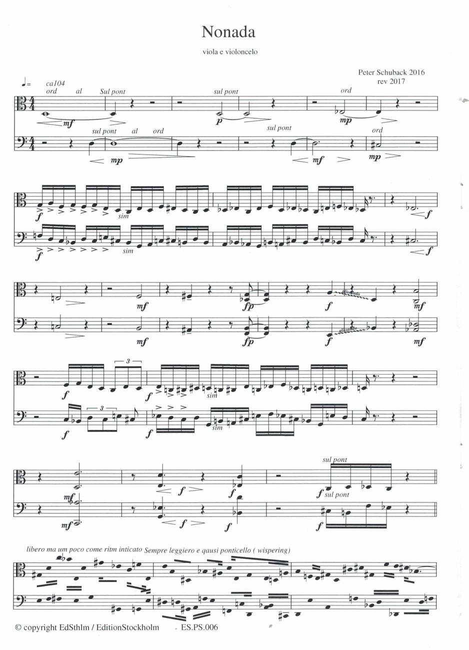 Peter Schuback Nonada for Viola and Cello Price 90 SEK Peter Schuback Works by Peter Schuback SKU ES.PS.006 Genre duo Instruments included viola cello