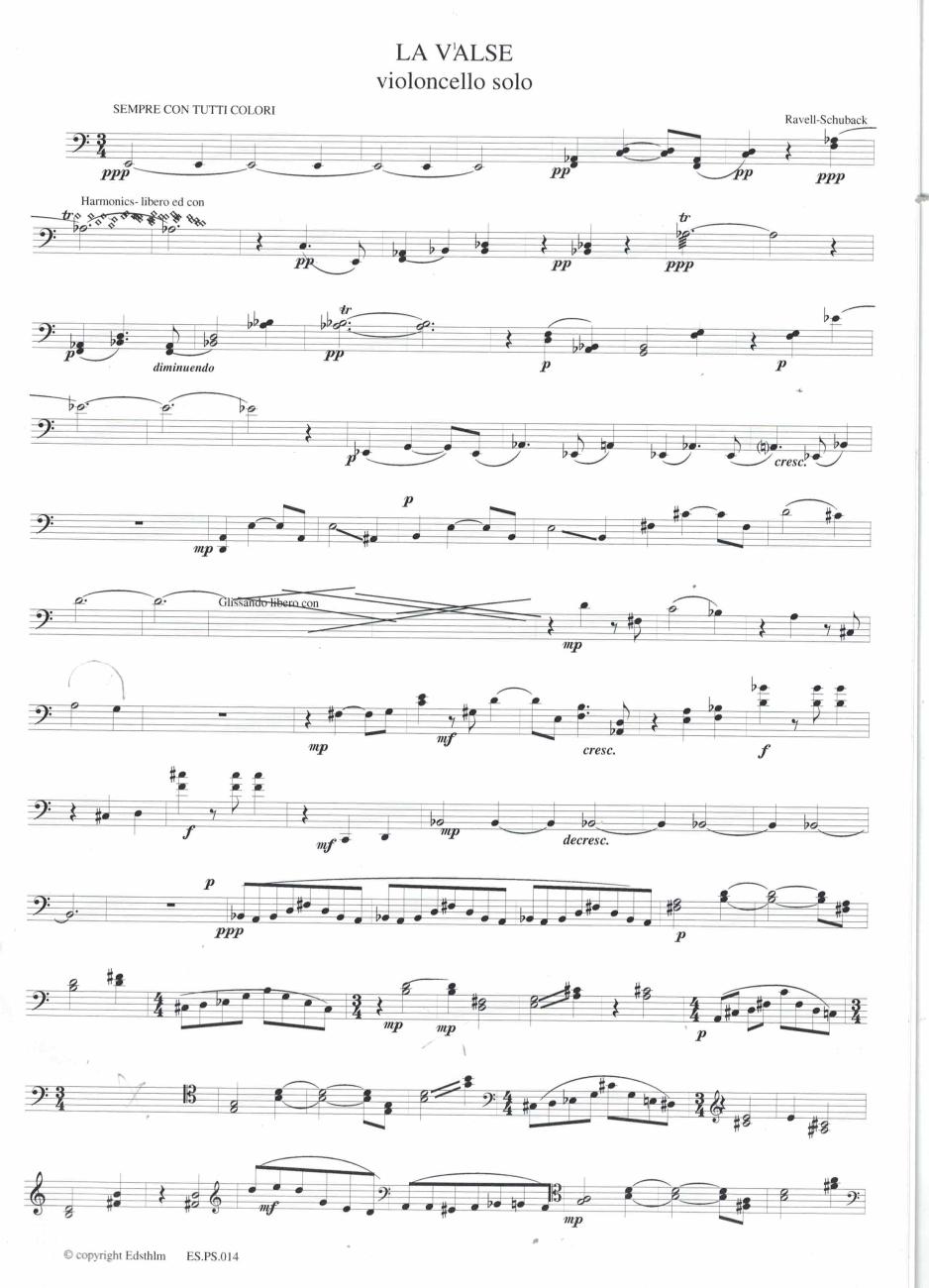 Peter Schuback La Valse for cello solo Price 140 SEK Work introduction Adaption from Ravel's La Valse Peter Schuback Works by Peter Schuback SKU ES.PS.014 Genre solo adaption / transcription Instruments included cello